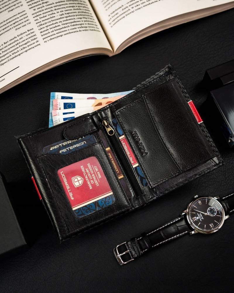 Duży, skórzany portfel męski bez zapięcia — Peterson