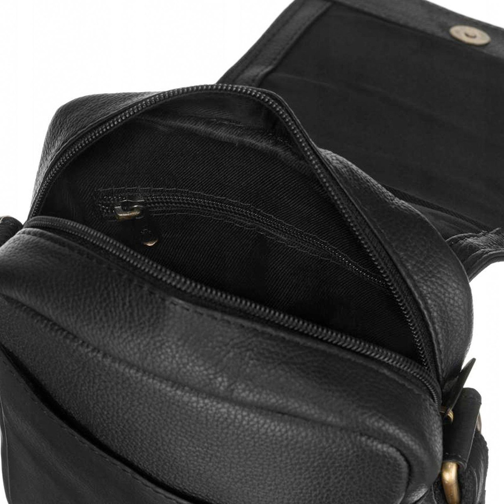 Dodatkowo, listonoszka posiada otwartą kieszonkę na froncie pod klapką. Tył listonoszki zawiera kolejną, zamykaną bezpiecznym suwakiem kieszeń. Całość na materiałowej podszewce, która chronić będzie skórę przed uszkodzeniami podczas wkładania i wyjmowania z niej przedmiotów.
