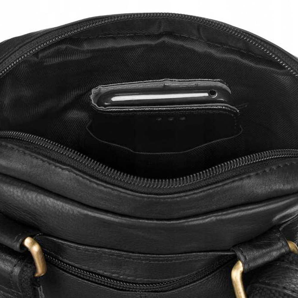 Tył listonoszki zawiera kolejną, zamykaną bezpiecznym suwakiem kieszeń. Całość na materiałowej podszewce, która chronić będzie skórę przed uszkodzeniami podczas wkładania i wyjmowania z niej przedmiotów.