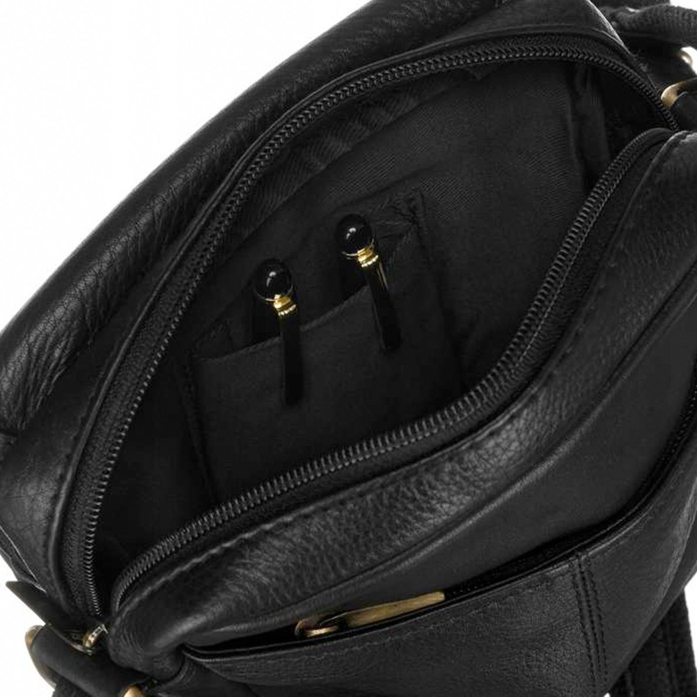 Tył listonoszki zawiera kolejną, zamykaną bezpiecznym suwakiem kieszeń. Całość na materiałowej podszewce, która chronić będzie skórę przed uszkodzeniami podczas wkładania i wyjmowania z niej przedmiotów.