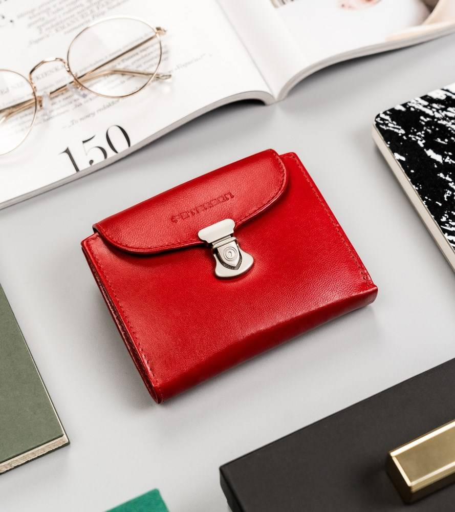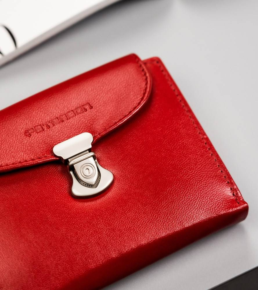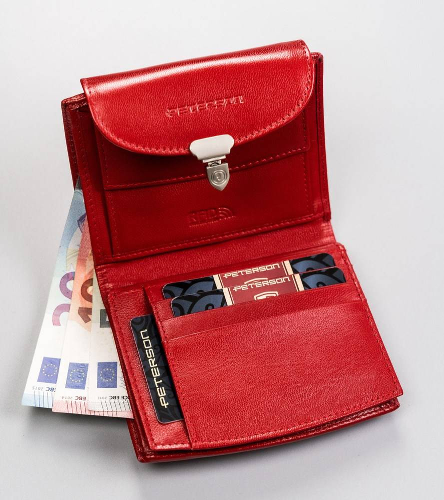 Skórzany portfel damski z systemem RFID zapinany na zatrzask — Peterson