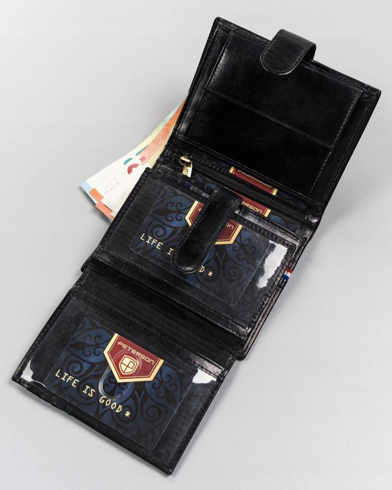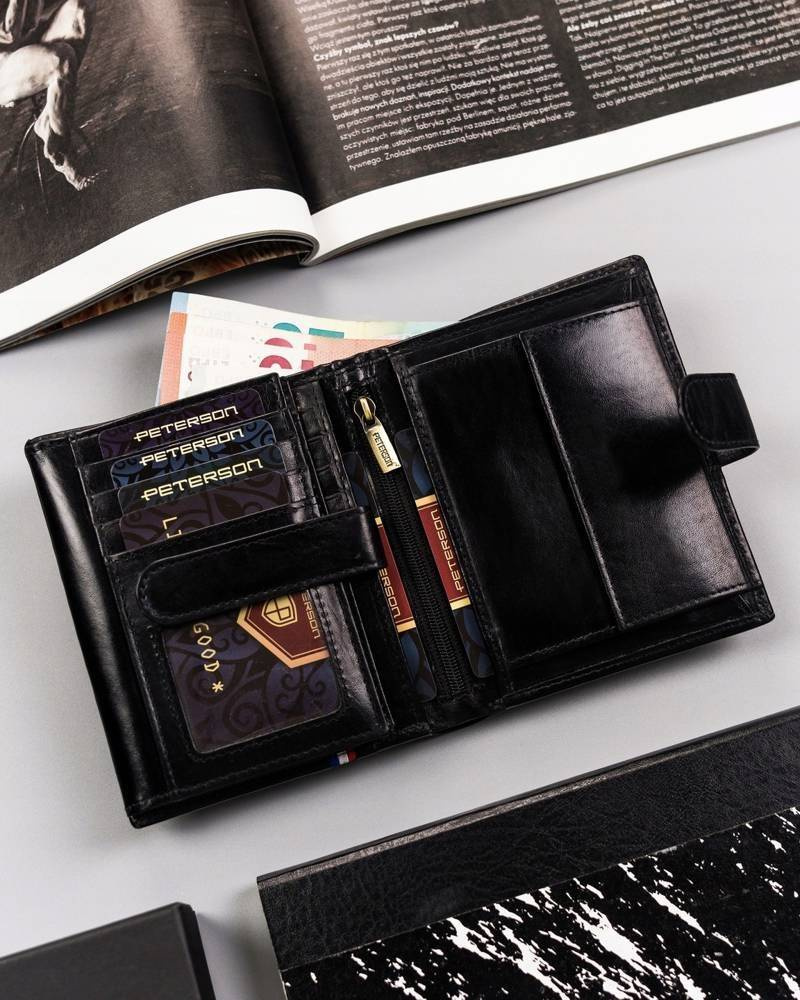 Duży, skórzany portfel męski na zatrzask — Peterson