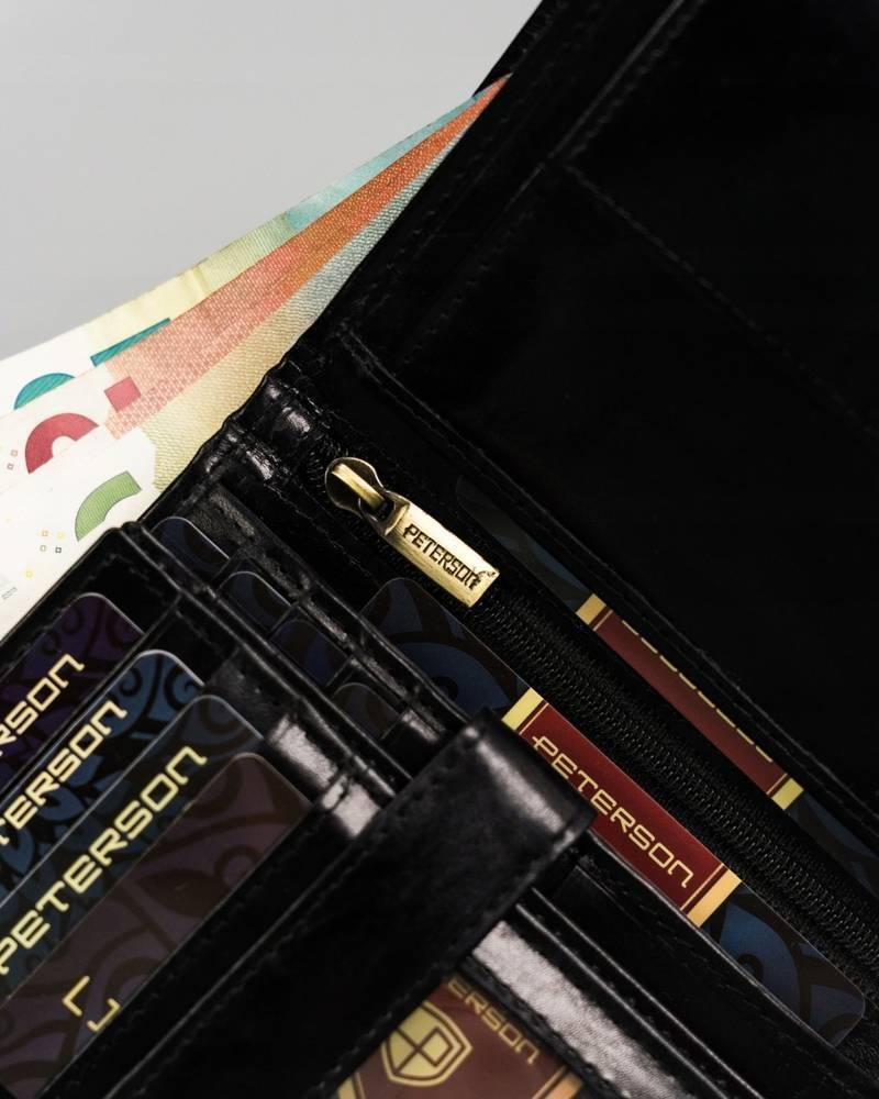 - 1 schowek na suwak w centralnej części portfela.