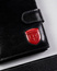 - Modny design | Odszyty bardzo trwale z doskonałej jakości gładkiej skóry naturalnej w czarnym kolorze, dodatkowo na froncie portfela wyszyto trójkolorowy paseczek;