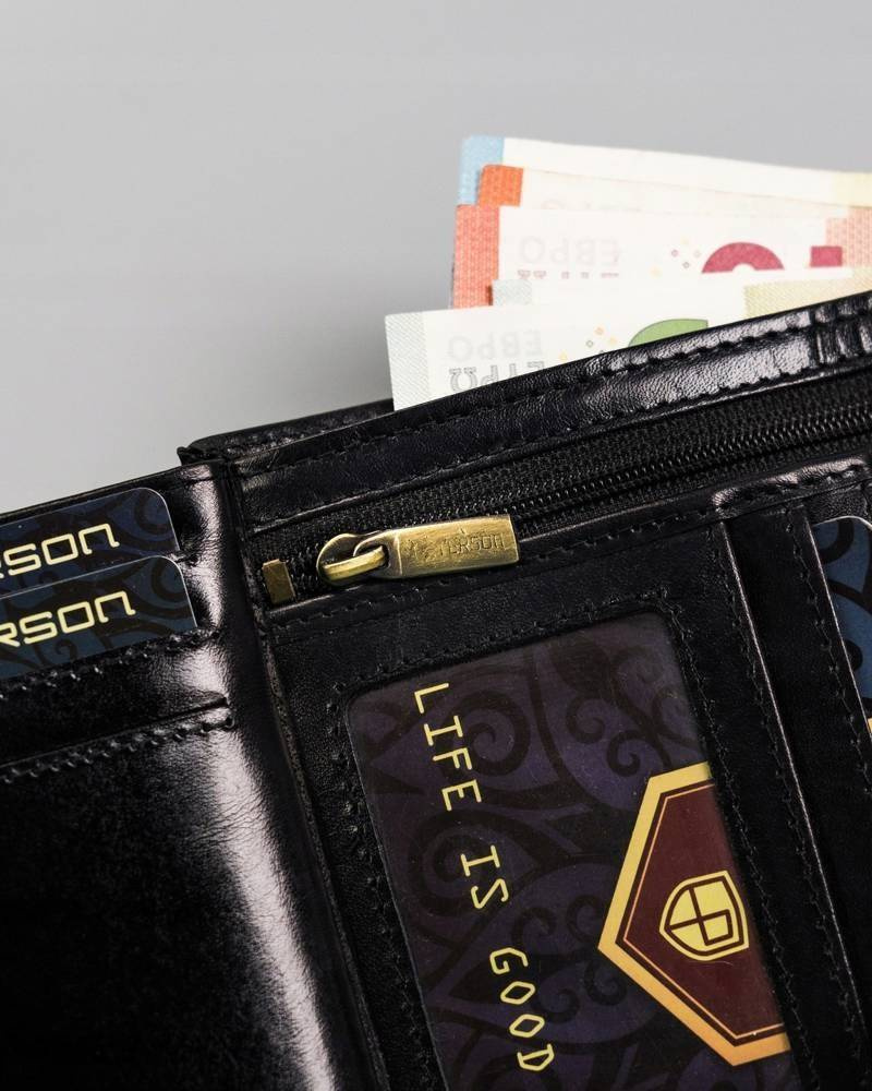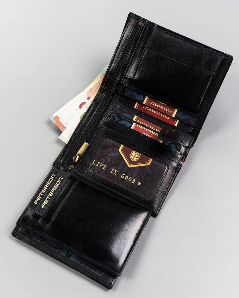 - Pojemny model | Portfel zarówno dla zwolenników gotówki i "wirtualnych pieniędzy". Gotówka i spora ilość dokumentów znajdzie tu swoje miejsce. Model mieści dowód rejestracyjny;