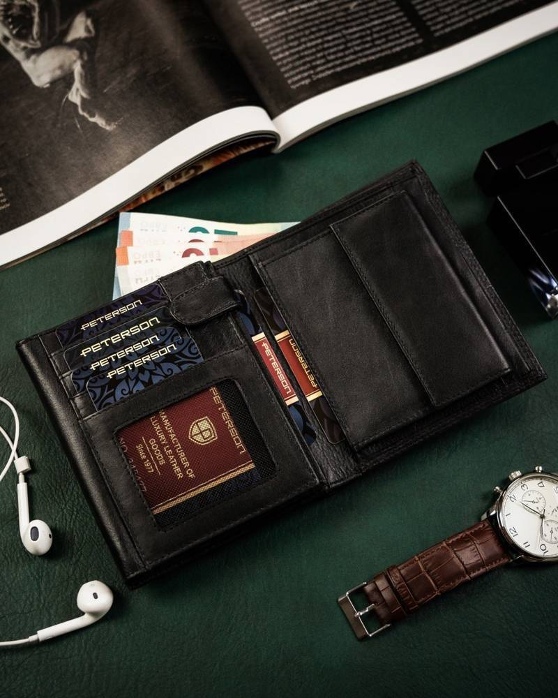 Duży, skórzany portfel męski z systemem RFID — Peterson