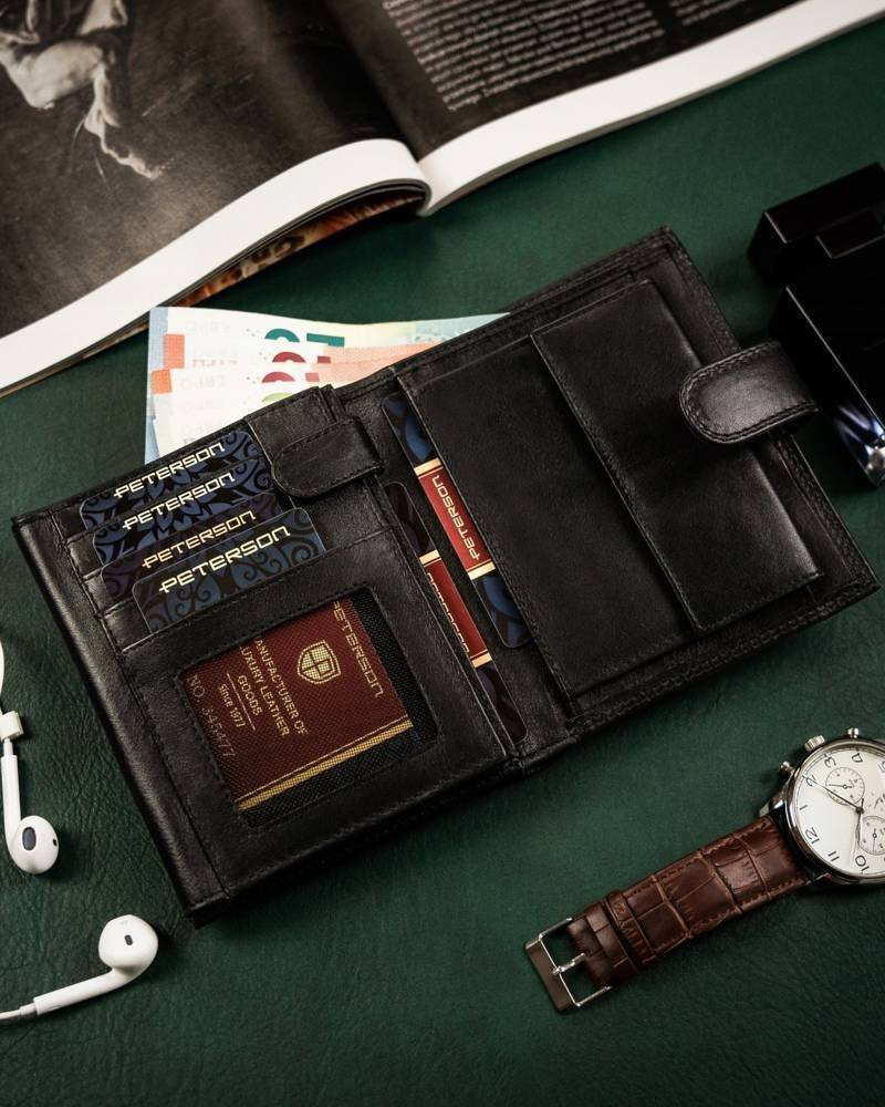 Duży, skórzany portfel męski z systemem RFID — Peterson