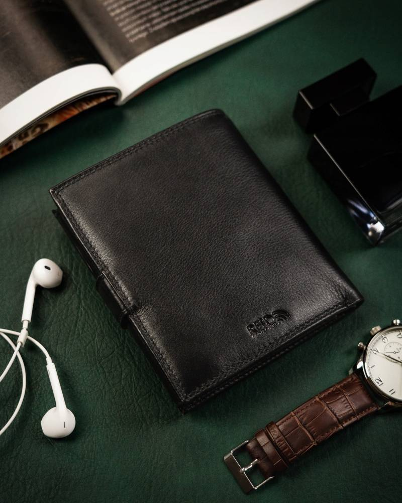 Skórzana elegancja | Portfel męski w orientacji pionowej w czarnym, zawsze modnym kolorze;