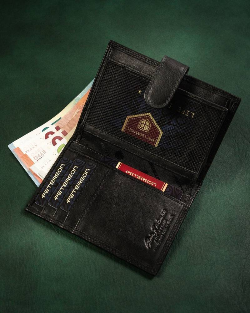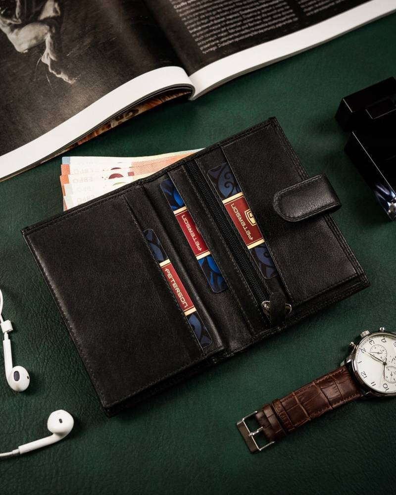 Model ten posiada bardzo świetnie rozlokowany system kieszonek i schowków. Sam portfel jest idealny do przechowywania dokumentów o większym formacie, ale też do zamieszczenia w nim sporej gotówki.