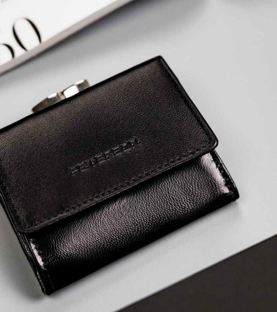 Mały, skórzany portfel damski na zatrzask i bigiel — Peterson