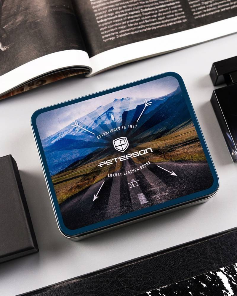 Każdy portfel zapakowany jest w elegancką firmową puszkę.