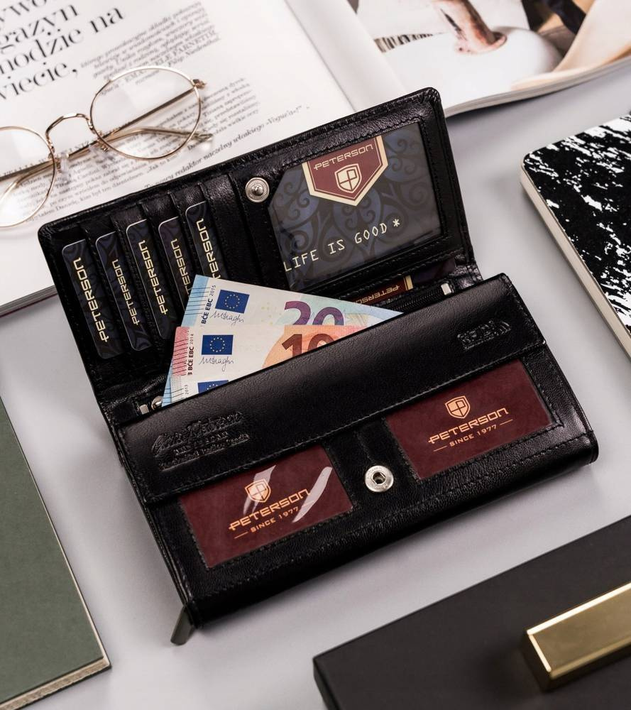 Portfel damski ze skóry naturalnej na zatrzask — Peterson