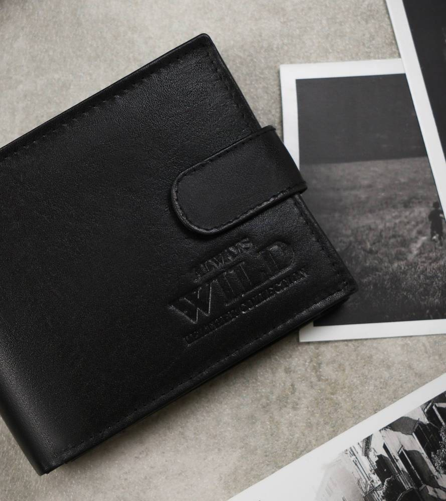 - Wysoka jakość | Portfel poziomy z zapięciem, odszyty z naturalnej skóry bydlęcej w czarnym kolorze, z którym zawsze będziesz czuć się dobrze!