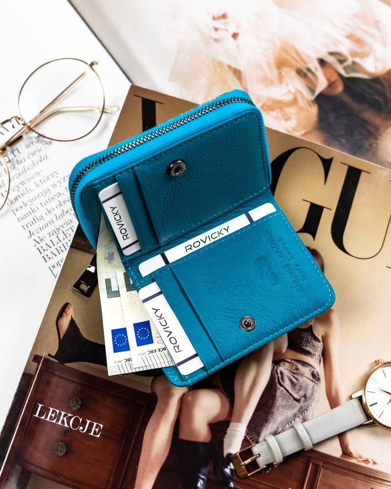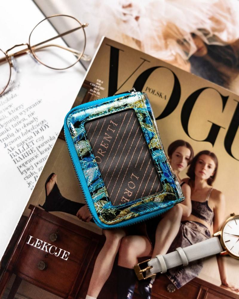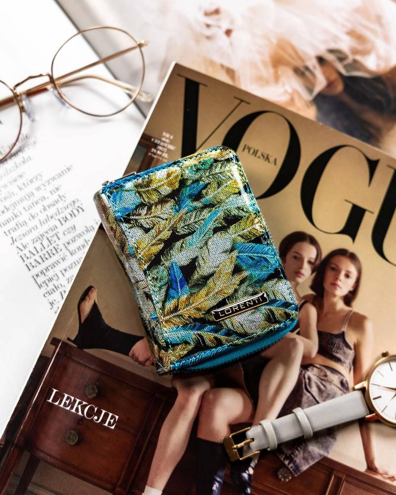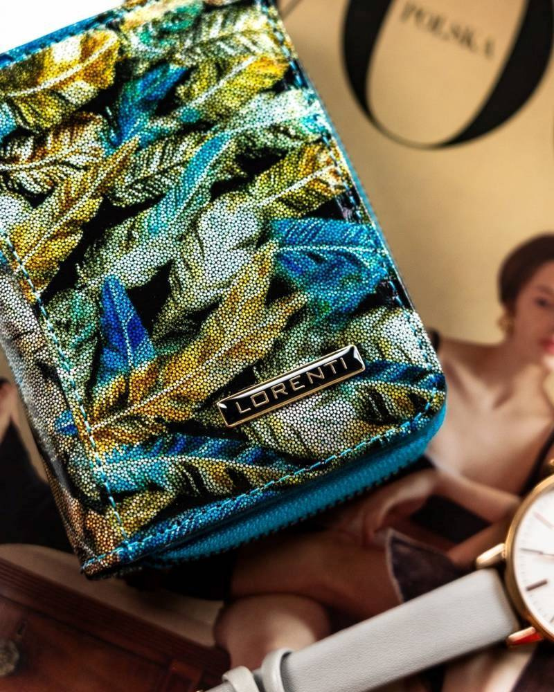 Mały, stylowy, skórzany portfel damski na zatrzask i zamek — Lorenti