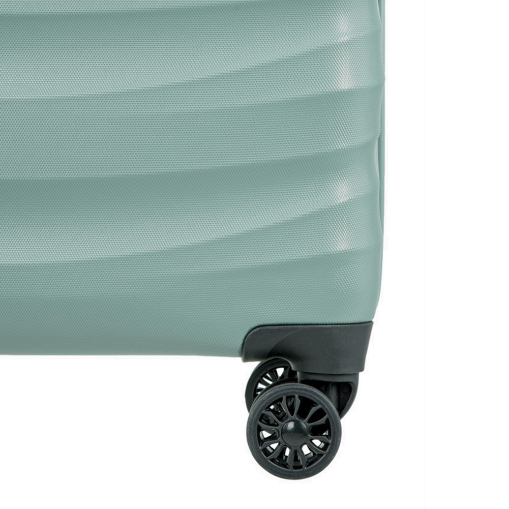 - 4 podwójne koła (spinner 360) (koła wykonane z gumy i PVC co dodatkowo wzmacnia je przed uderzeniami zewnętrznymi, oś na której zamocowane zostało koło wzmocniona pyłem diamentowym)