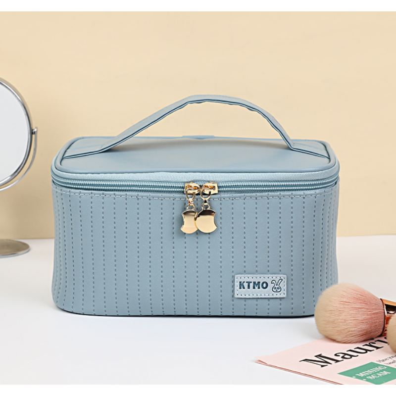 Kosmetyczka rozkładana pikowany kuferek niebieski denim KS71