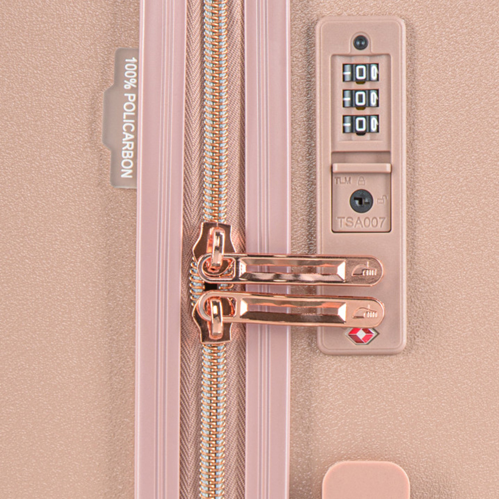 • dodatkowo wyposażona w wbudowany do wnętrza walizki zamek szyfrowy TSA (Travel Security Agency, bardzo przydatny w podróżach do USA)