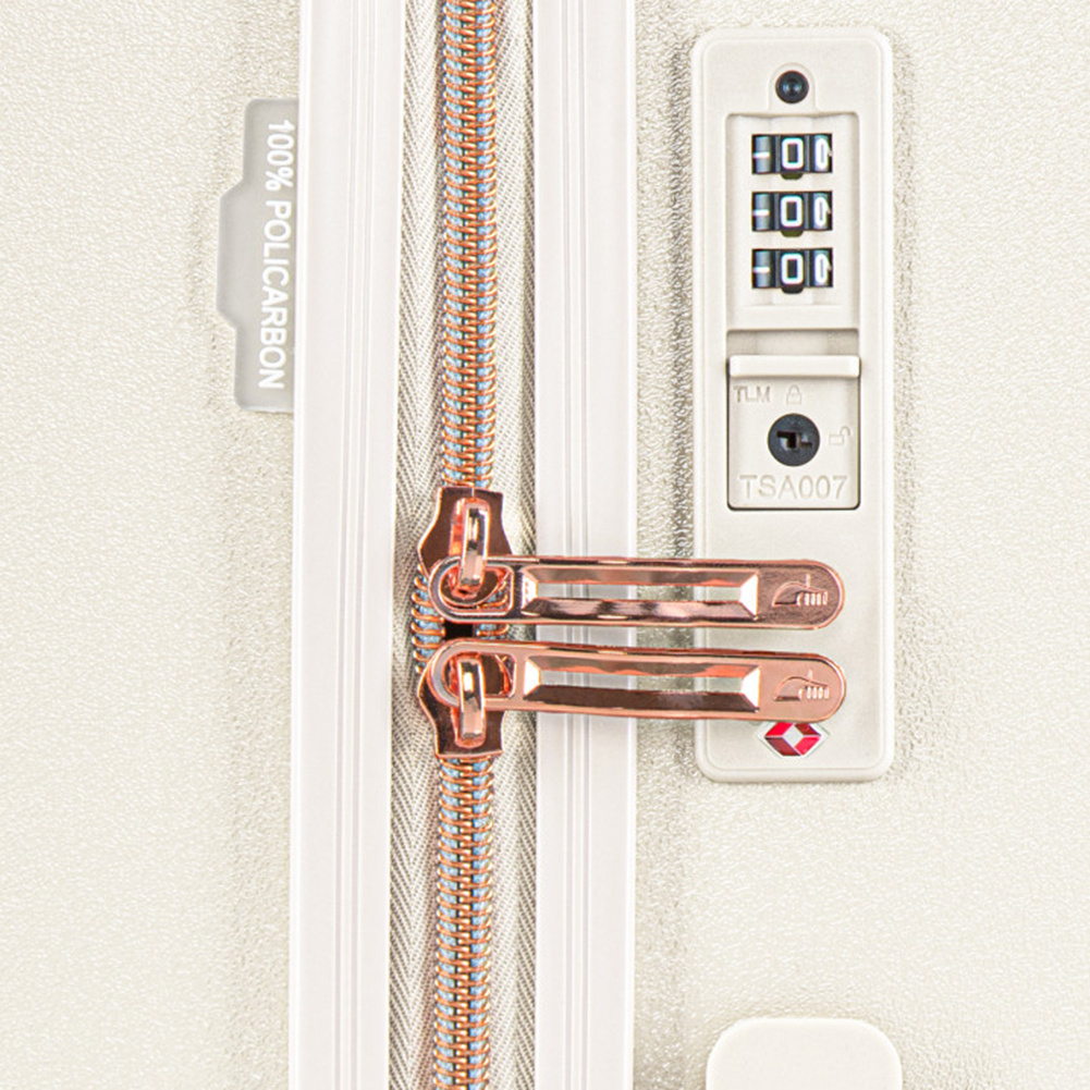 • dodatkowo wyposażona w wbudowany do wnętrza walizki zamek szyfrowy TSA (Travel Security Agency, bardzo przydatny w podróżach do USA)