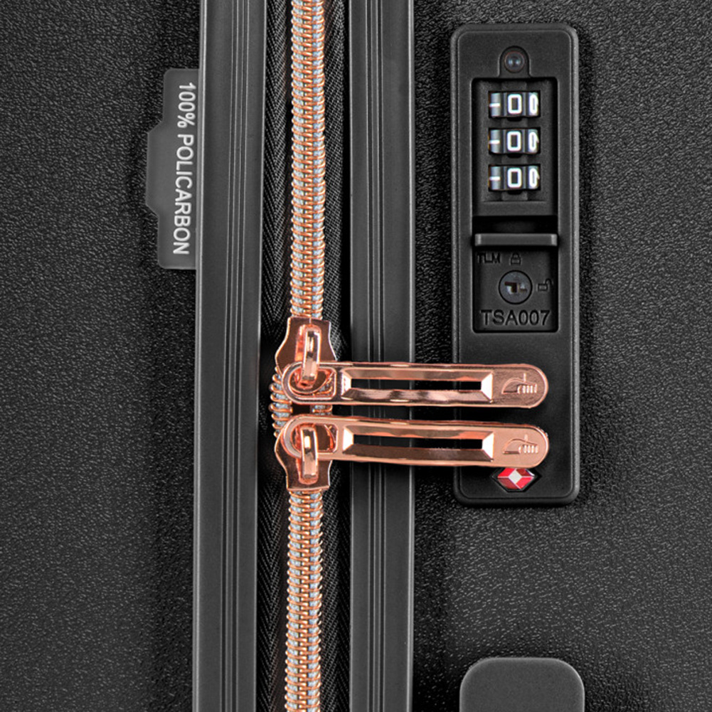 • dodatkowo wyposażona w wbudowany do wnętrza walizki zamek szyfrowy TSA (Travel Security Agency, bardzo przydatny w podróżach do USA)