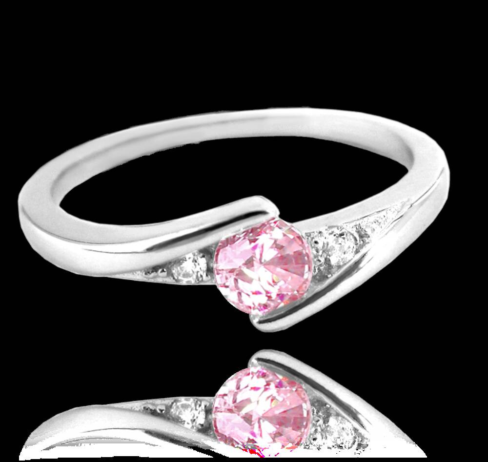 Ten popularny srebrny pierścionek z różowym kamieniem i białą cyrkonią sześcienną jest jednym z najlepiej sprzedających się pierścionków MINET.