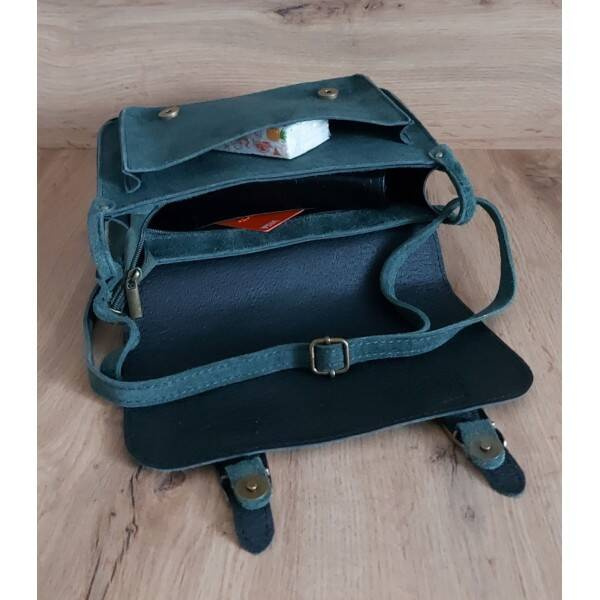 Komora główna listonoszki zapinana na zamek ,pod klapą otwarta przegroda na podręczne gadżety.