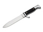 Solidne ostrze noża w pochwie jest wykonane z satynowanego 440A i jest dostarczane z praktyczną piłą czopową.
