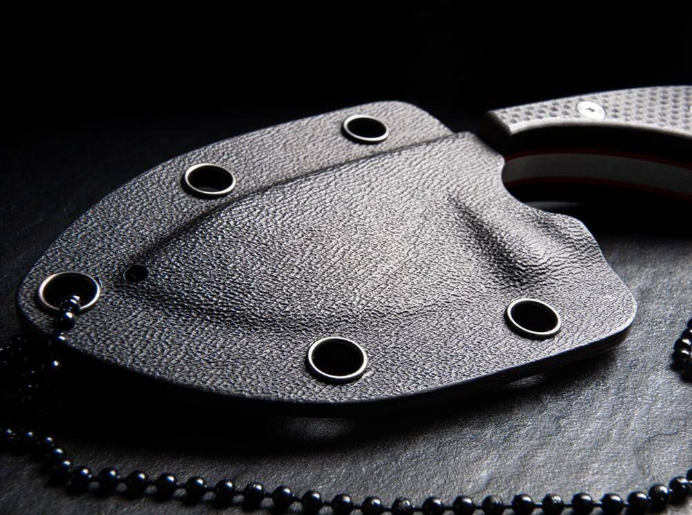 Z otworem na smycz, łańcuszkiem kulkowym i dopasowaną pochwą z Kydexu.