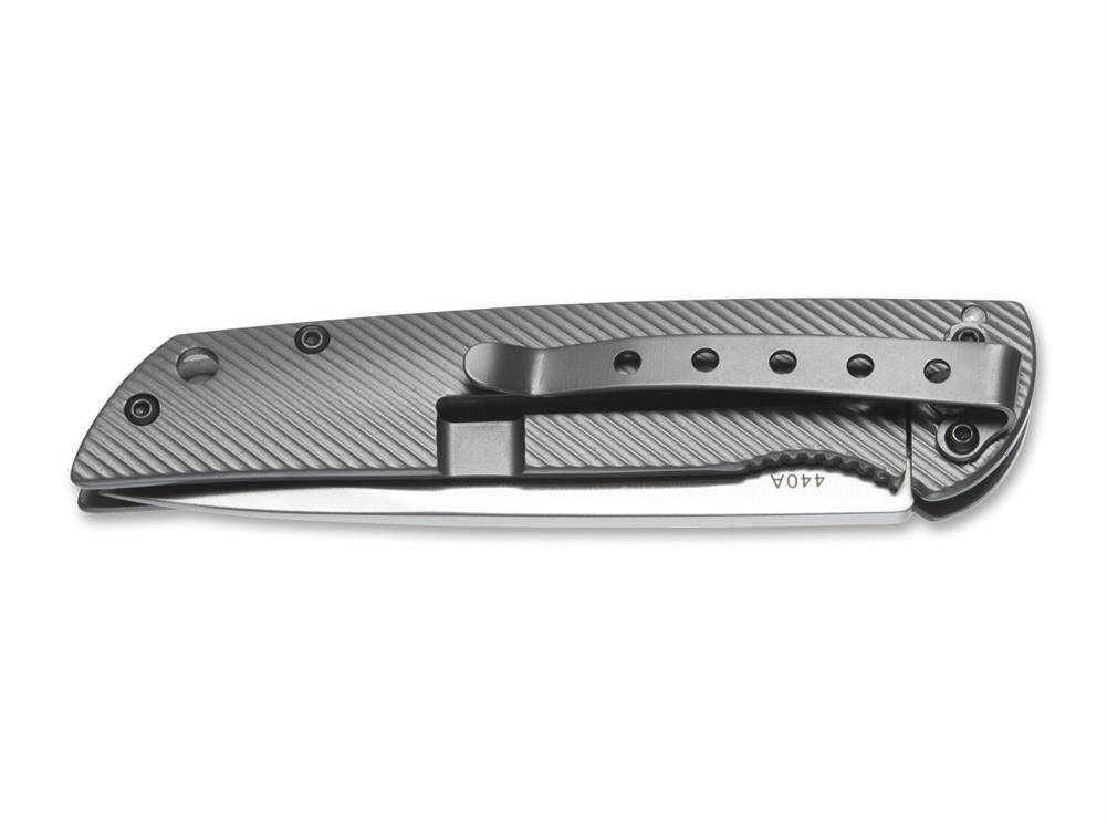 Prawie wygięte do tyłu ostrze z wyraźnym ricasso przypomina nieco rekina. Nacięcie na gwoździu i czysty, smukły uchwyt z blokadą ramki dopełniają projekt Magnum Eternal Classic. Ostrze tego prostego noża wykonane jest ze stali nierdzewnej 440A. Z klipsem (z końcówką w dół) i otworem na smycz.