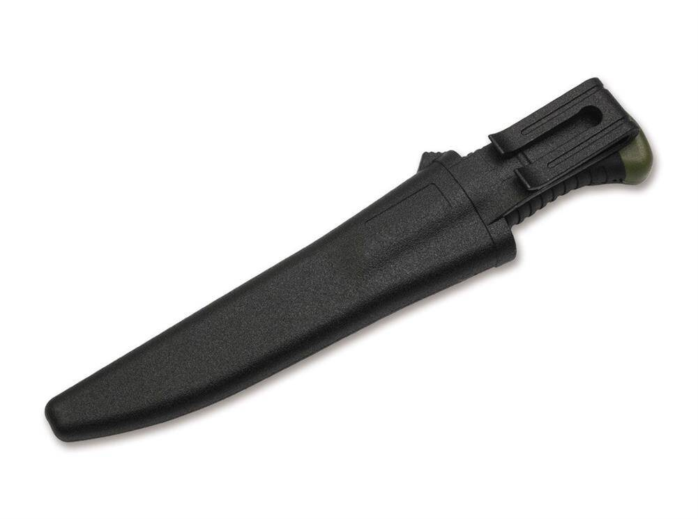 Magnum Falun jest znanym koniem roboczym skandynawskich lasów, wybrzeży i jezior. Plastikowy uchwyt w kolorze oliwkowym z antypoślizgową, wyprofilowaną gumową powłoką sprawia, że nóż jest nie tylko idealnym towarzyszem dla wędkarzy, ale dzięki stonowanej kolorystyce nadaje się również do polowania lub użytku wojskowego. Ostrze ze stali nierdzewnej 420 jest nierozłączne z odporną na złamanie plastikową rękojeścią. Niezniszczalny, wszechstronny, higieniczny, niedrogi. Odporna na przebicie i przecięcie plastikowa osłona kołczanu posiada zintegrowany klips i zapewnia dokładne i bezpieczne dopasowanie do noża. Otwór drenażowy zapewnia również, że wilgoć nie może gromadzić się w osłonie.