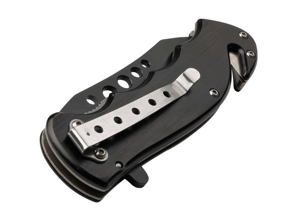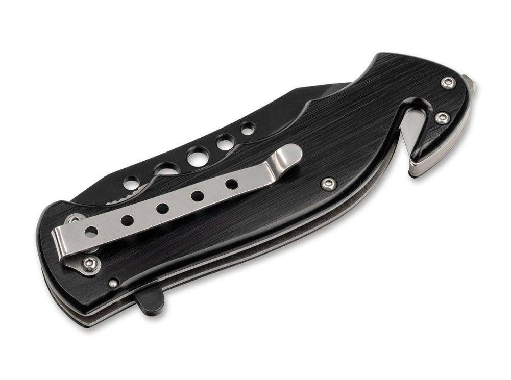 Na końcu rękojeści znajduje się zbijak do szyb oraz przecinak do pasów, które predestynują nóż do każdego zestawu ratunkowego.