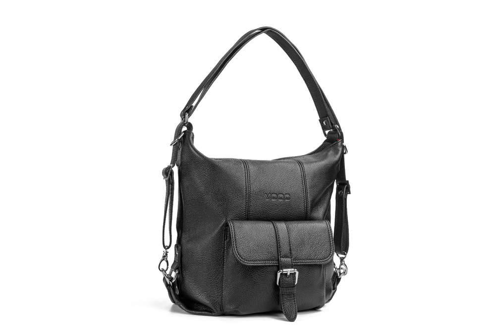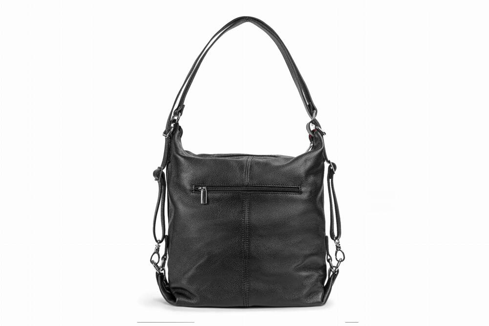 Torebka/plecak mieści format A4. Ma dwie, pojemne, wygodne komory, które oddziela głęboka kieszeń zapinana na zamek. Dodatkowo jest wyposażona w kieszonkę na telefon oraz zapinaną na zamek kieszeń na dokumenty. Na przodzie torby poręczna kieszeń z klapką zapinana na magnes.