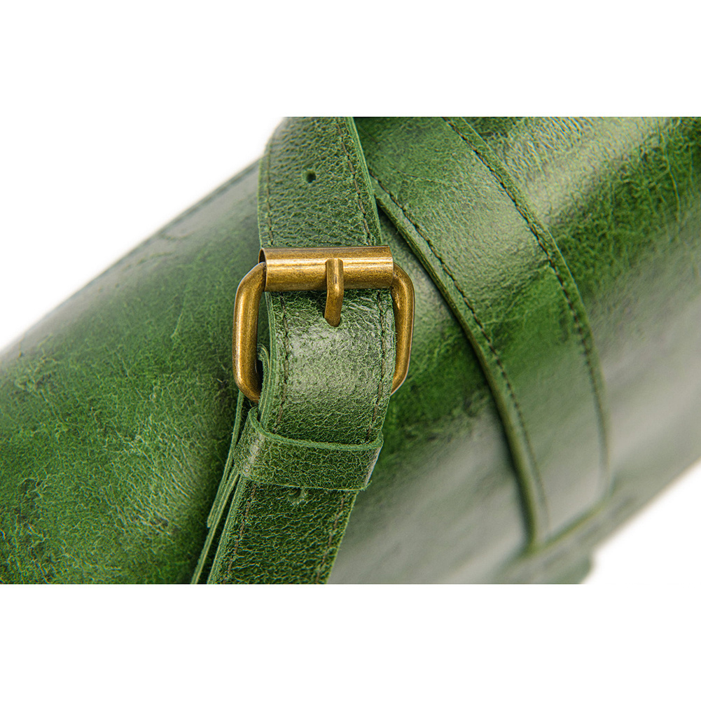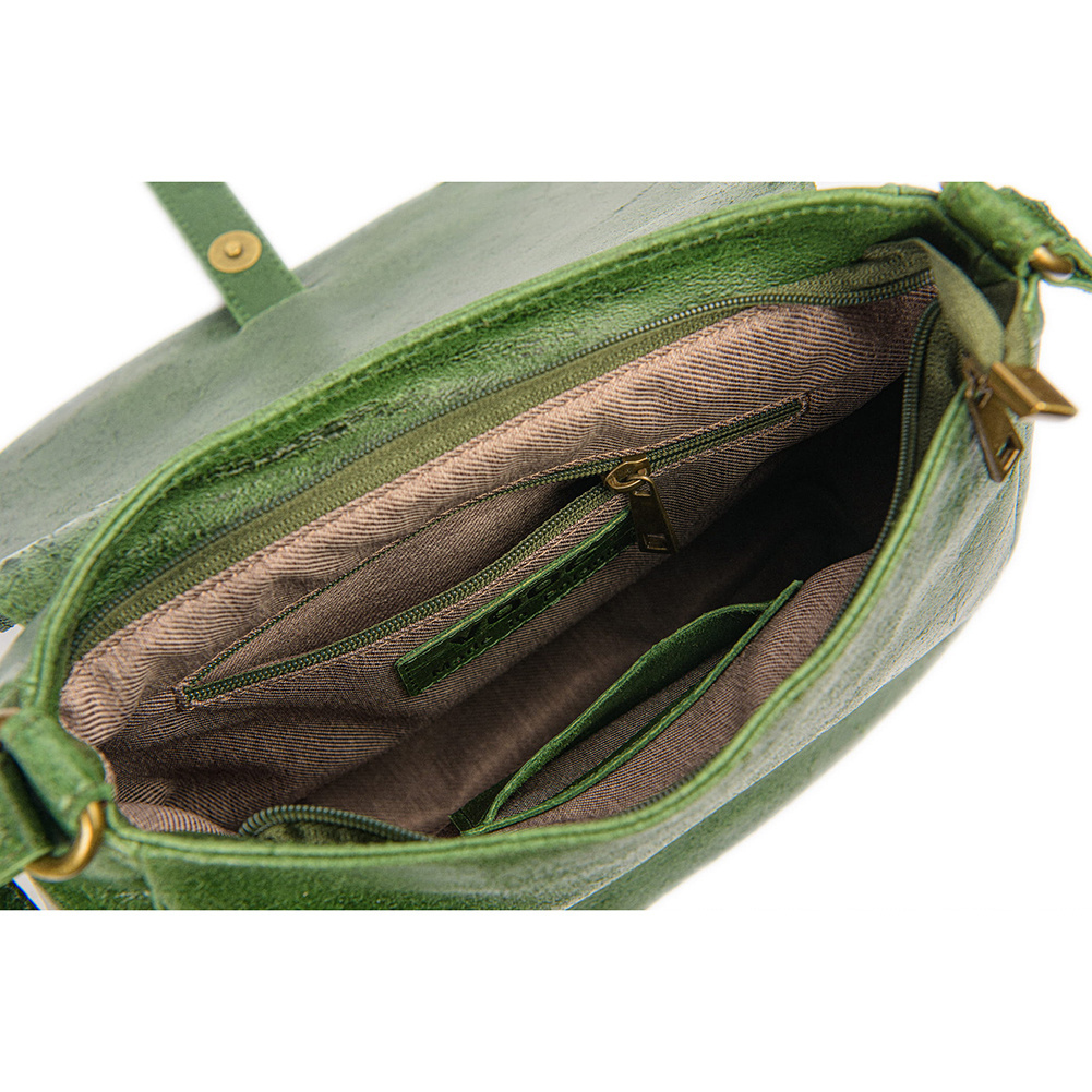 Listonoszka, która wpisuje się w aktualne trendy modowe. Jest uszyta w Polsce z trwałej, pięknej, specjalnie postarzanej skóry naturalnej. Torebka ma efektowne tłoczenie skóry oraz solidne, metalowe detale w kolorze mosiądzu. Na przodzie ozdobny pasek. Zapinana jest na zamek błyskawiczny, a klapa na magnes. Wnętrze listonoszki wyposażone jest w dwie kieszonki abyś mogła schować w nich telefon, dokumenty czy ulubioną szminkę. Kieszeń tylna zapinana na suwak. Długi regulowany pas dopasujesz do swoich potrzeb. Wnętrze wykończone jest trwałą, bawełnianą podszewką w beżowym kolorze.