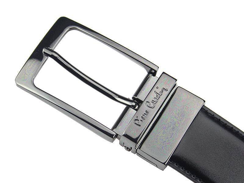 Pasek posiada metalową klamrę wyglądającą klasycznie. Na skórze posiada sygnowane wytłoczenie marki Pierre Cardin. Istnieje łatwa możliwość własnoręcznego skrócenia paska.