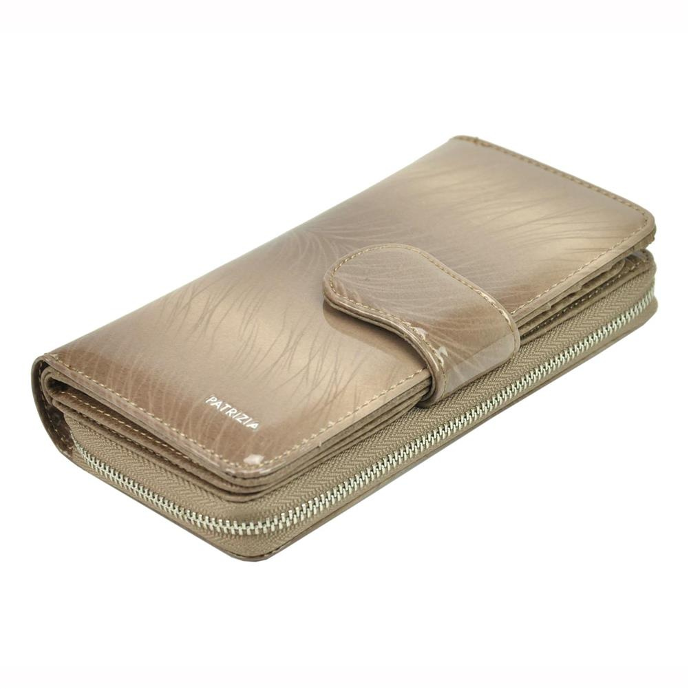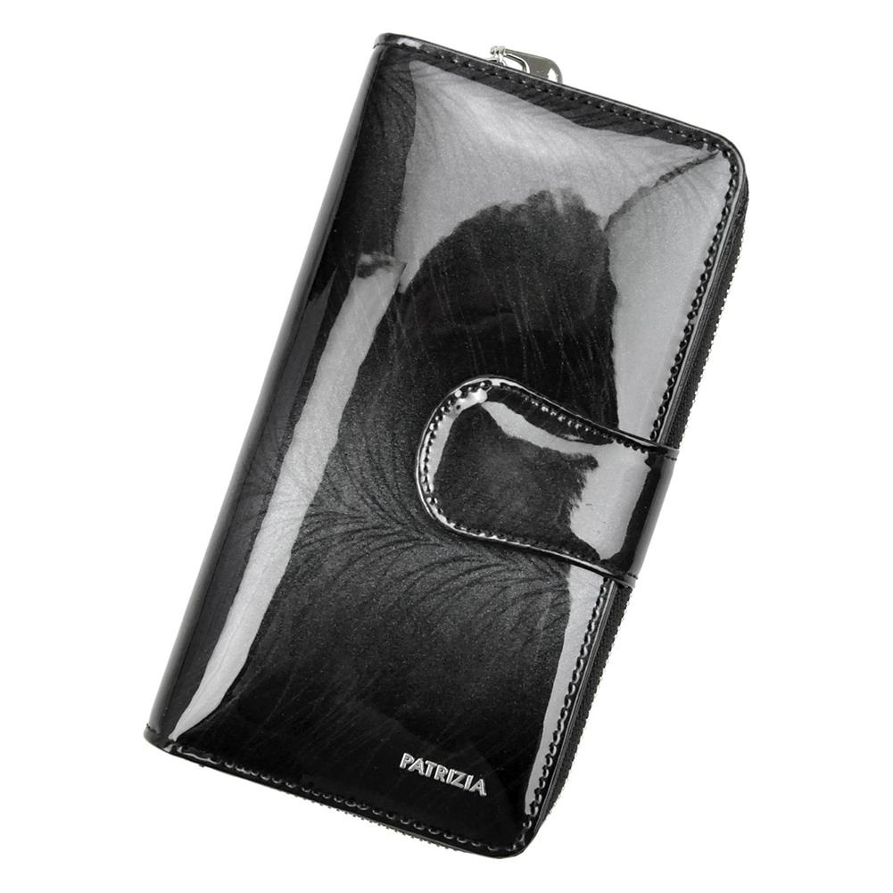 Duży portfel damski, wykonany z najwyższej jakości naturalnej, włoskiej skóry licowej lakierowanej.