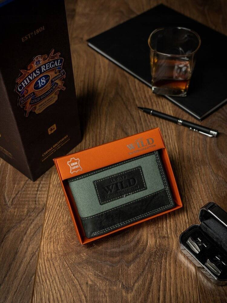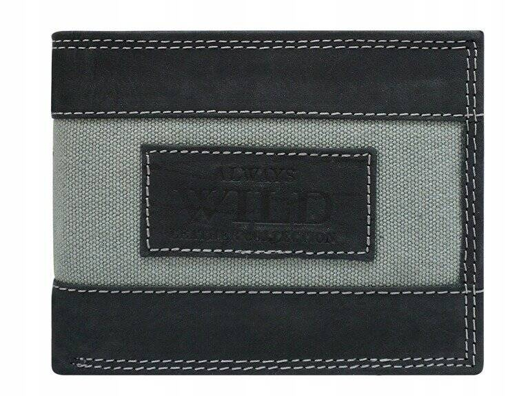 Poziomy portfel z elementami jeansu, skóra naturalna nubuk— Always Wild