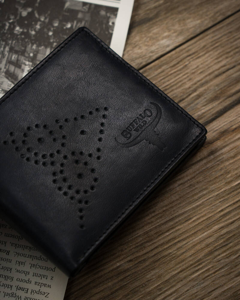 Skórzany portfel męski ze zdobionym frontem — Buffalo Wild