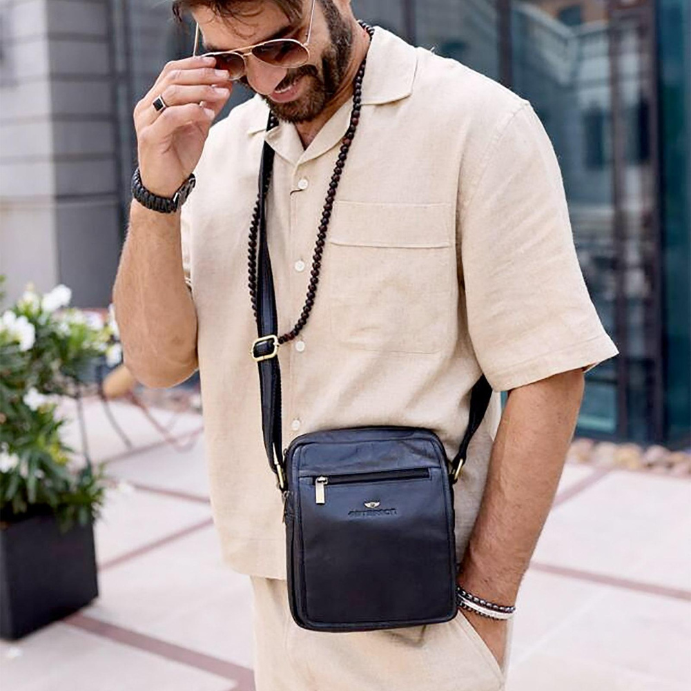 Skórzana listonoszka męska z kieszonkami — Peterson