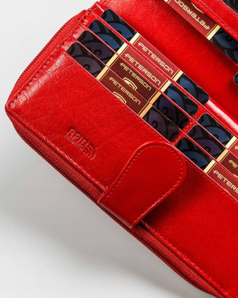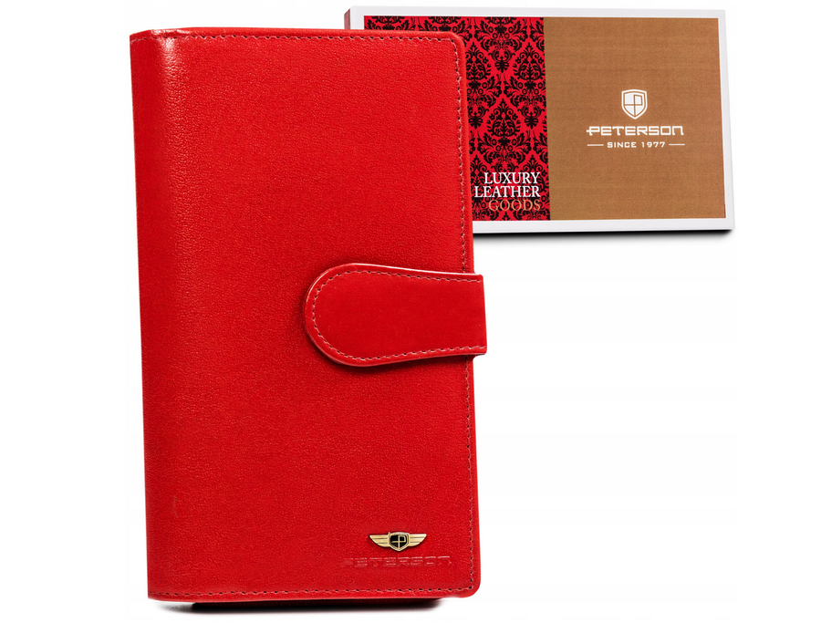 Duży, skórzany portfel damski na zamek i zatrzask — Peterson