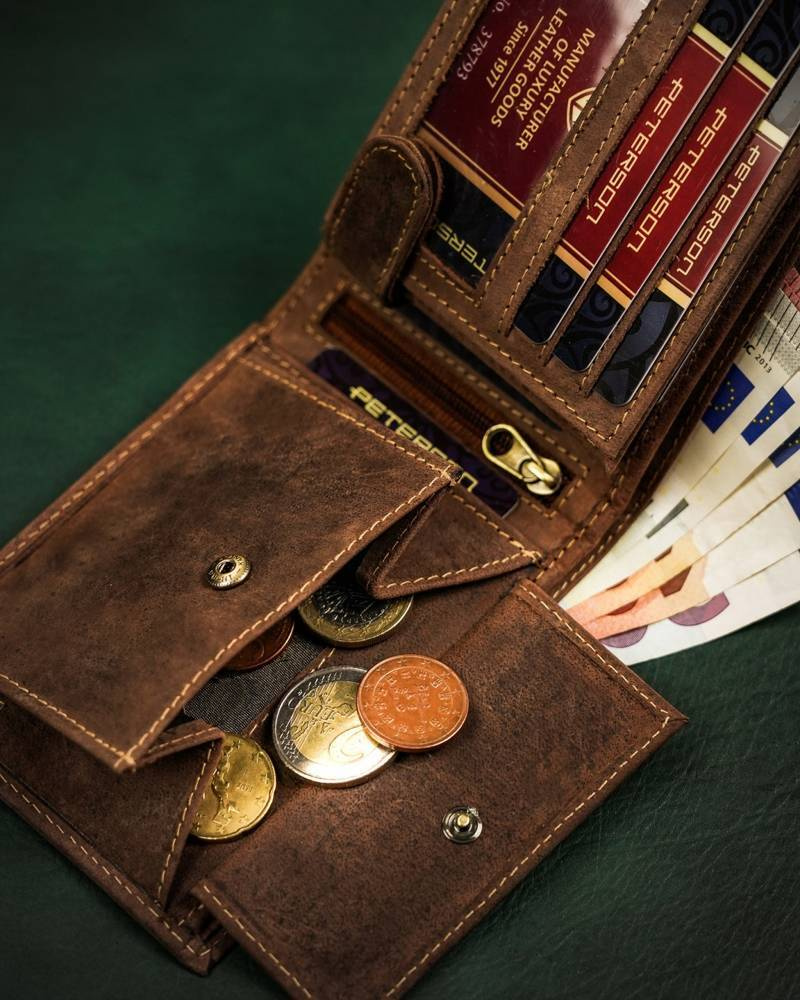 W kieszeniach na banknoty i monety zmieścisz satysfakcjonującą ilość gotówki.