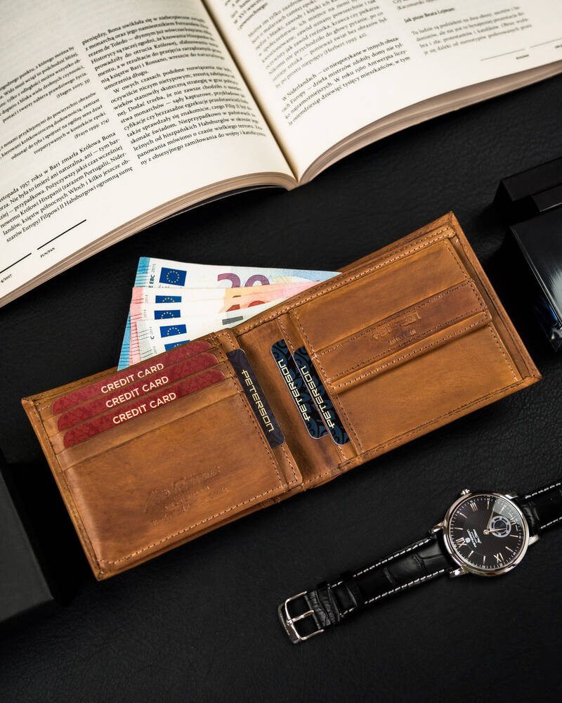 Męski portfel w poziomej orientacji bez zapięcia zewnętrznego. Idealny dla Mężczyzn w każdym wieku!