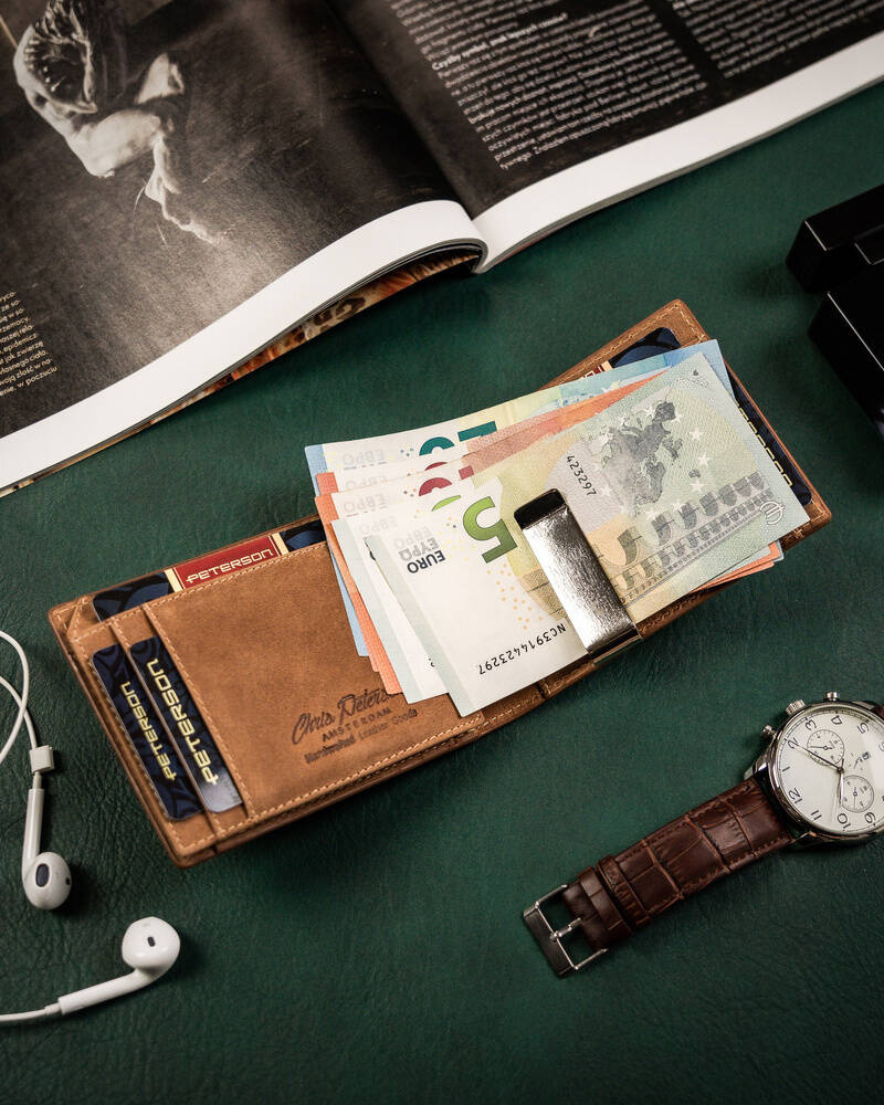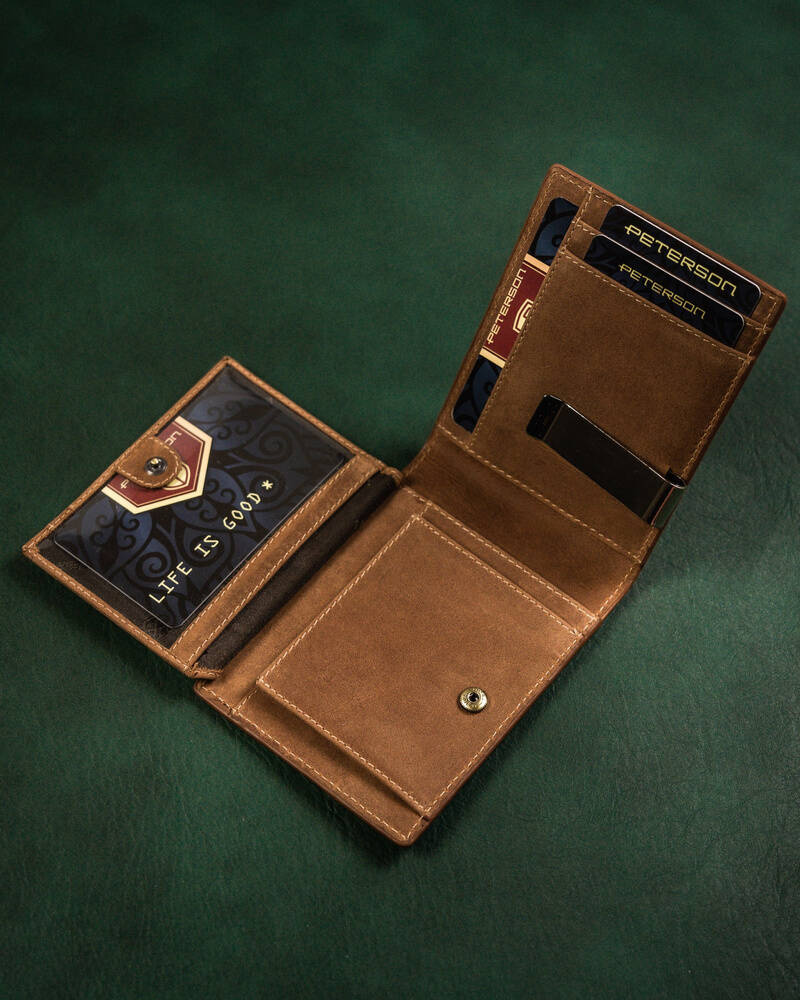 Skórzany portfel męski z klipsem na banknoty — Peterson