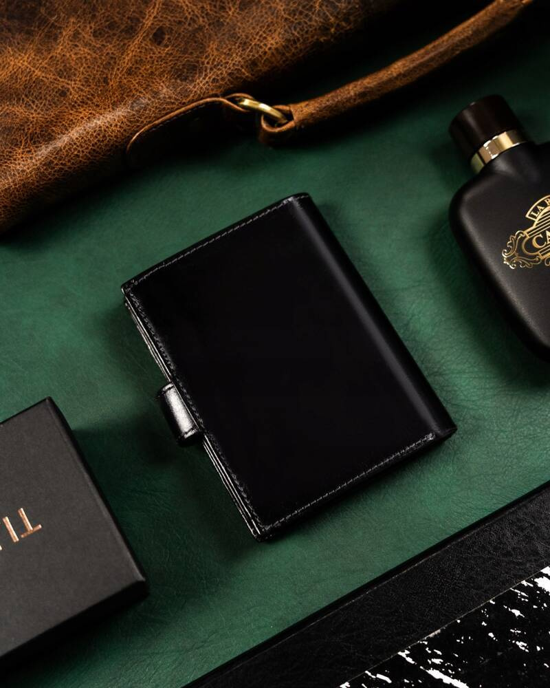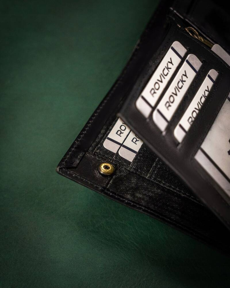 - Bezpieczeństwo na wysokim poziomie | Wyposażony w technologie RFID, która chroni portfel przed złodziejami używającymi czytniku do kart;