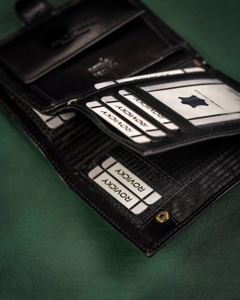 Duży, skórzany portfel męski na zatrzask — Rovicky