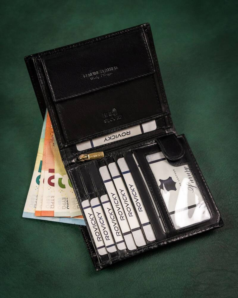 - Bezpieczny | Wyposażony w technologie RFID, która chroni portfel przed złodziejami używającymi czytniku do kart;