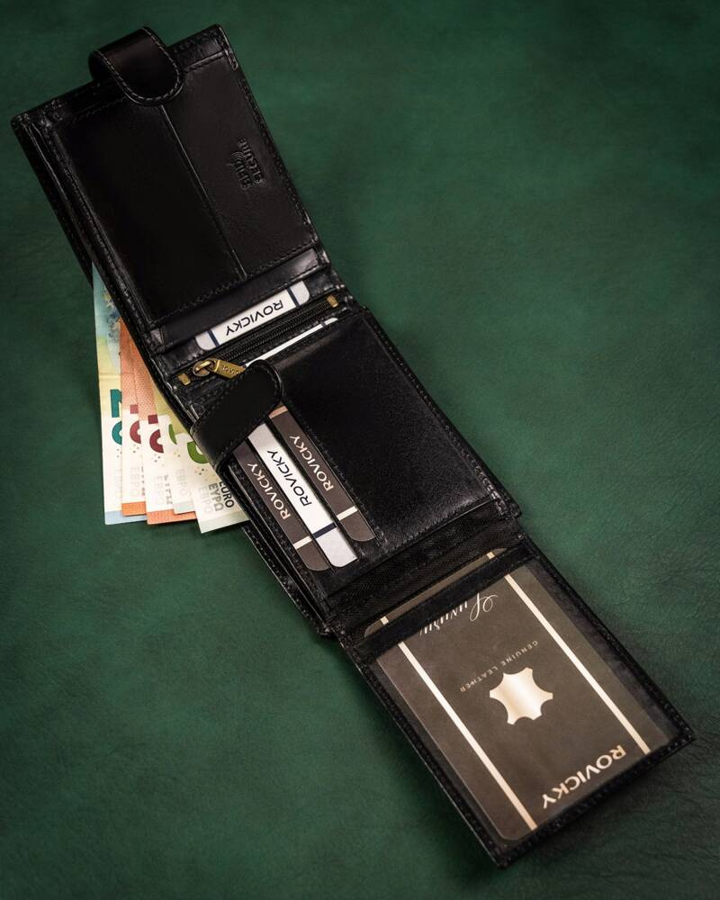 Duży, skórzany portfel męski na zatrzask — Rovicky