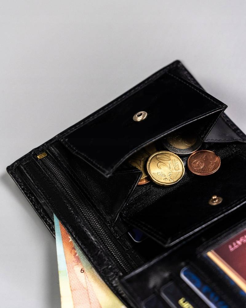 - banknoty schowasz do 3 kieszeni, jedna z nich jest otwarta, pozostałe dwie zapinane na suwak.