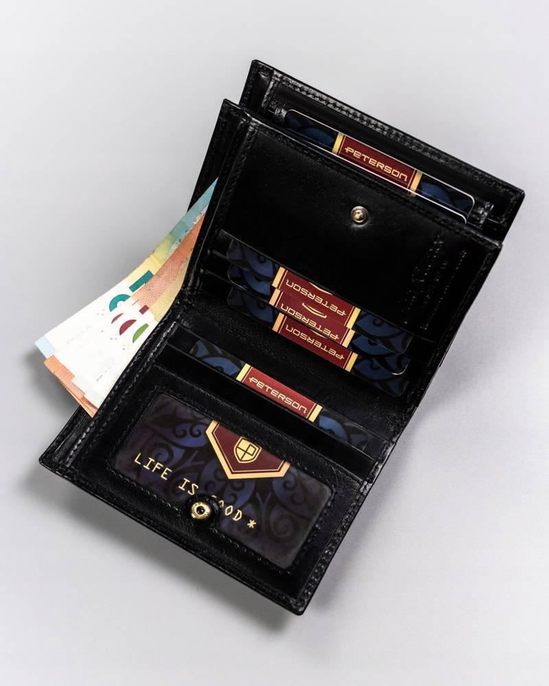 - Pomieści wszystkie Twoje karty Duży portfel o klasycznej stylistyce.