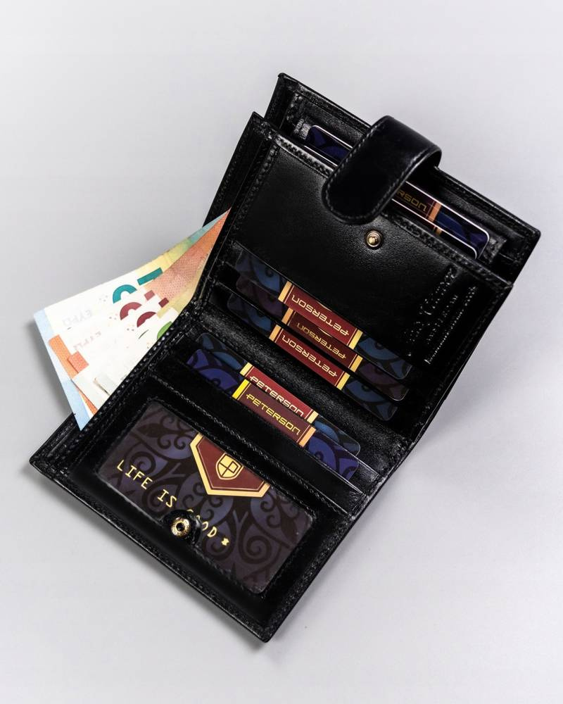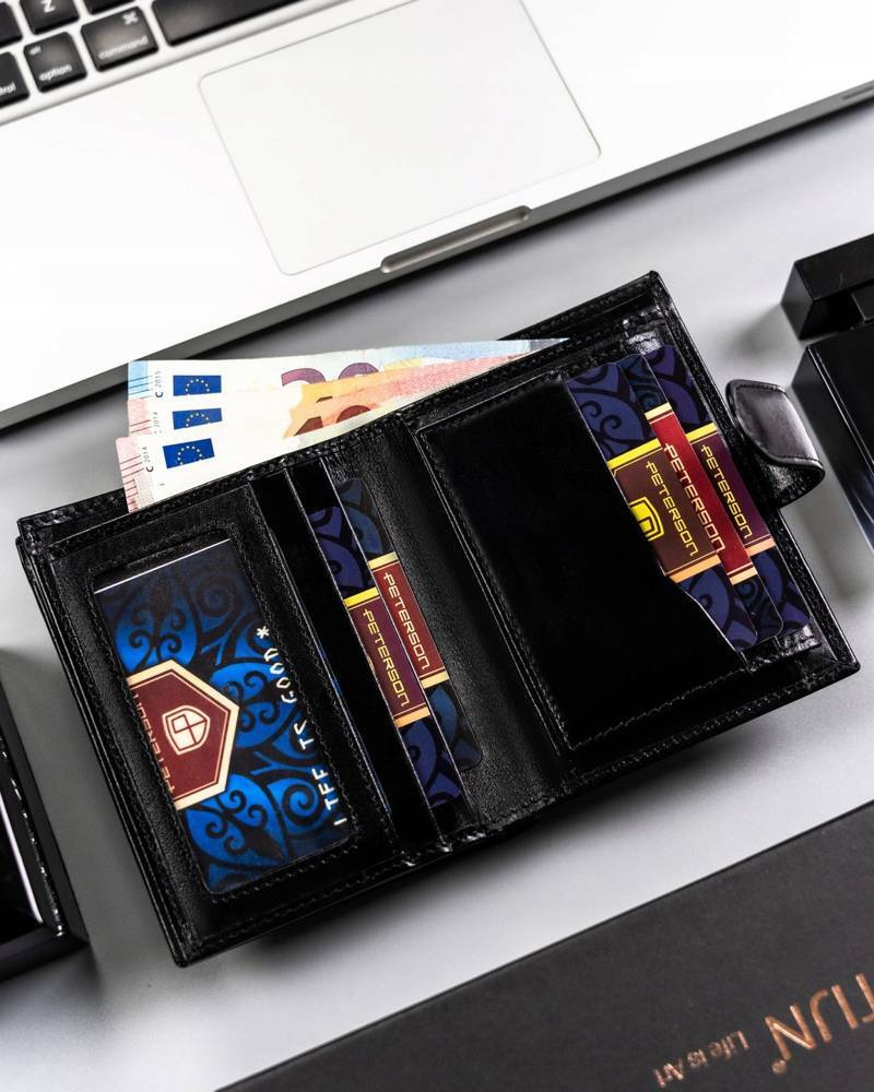 - Pomieści wszystkie Twoje karty Duży portfel o klasycznej stylistyce.
