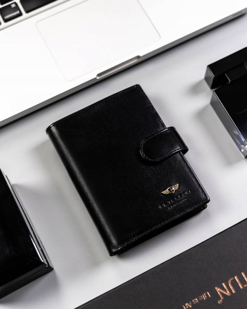 - Zawsze modny design | Pojemny portfel o klasycznej stylistyce. Model w orientacji pionowej zapinany na zatrzask;