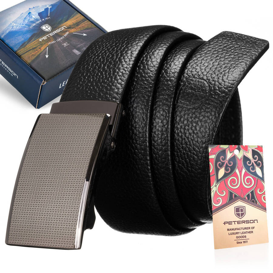 Elegancki, skórzany pasek z metalową klamrą automatyczną — Peterson